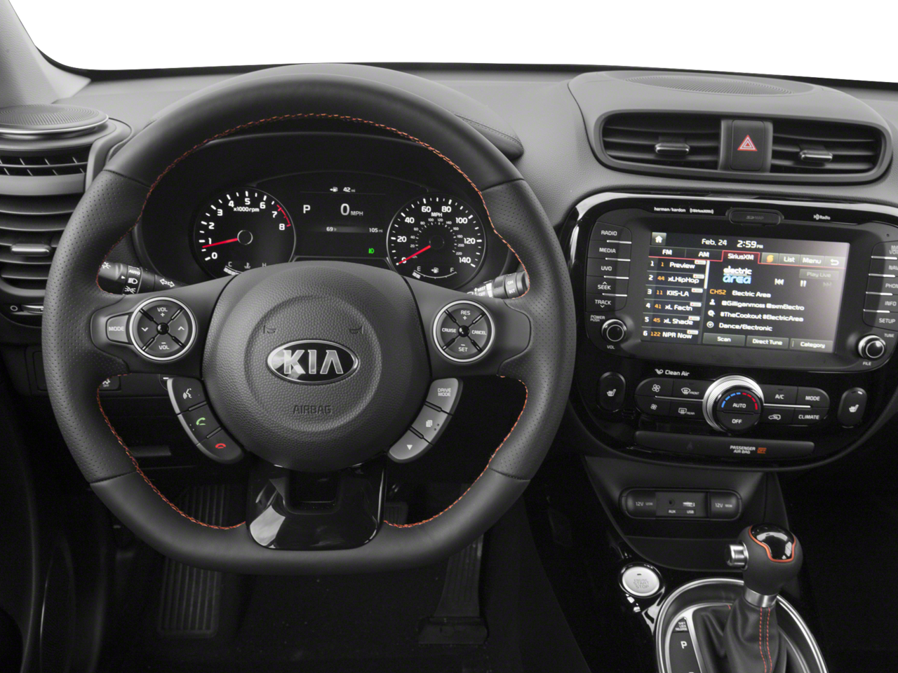 Bluetooth® technology is built into the Kia Soul, keeping your hands on the steering wheel and your focus on the road. This model offers Android Auto for seamless smartphone integration. The vehicle offers Apple CarPlay for seamless connectivity. The leather seats in this unit are a must for buyers looking for comfort, durability, and style. See what's behind you with the back up camera on the vehicle. This unit offers Automatic Climate Control for personalized comfort. This model has a 4 Cyl, 1.6L high output engine. The Kia Soul embodies class and sophistication with its refined white exterior. Maintaining a stable interior temperature in it is easy with the climate control system. This model is front wheel drive. Easily set your speed in this model with a state of the art cruise control system. Increase or decrease velocity with the touch of a button. Enjoy the tried and true gasoline engine in the vehicle.