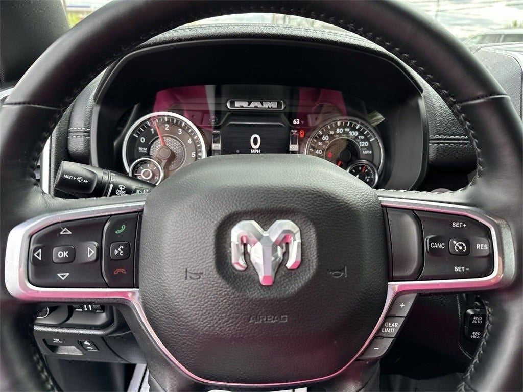 See what's behind you with the back up camera on this 2022 Ram 1500 . The state of the art park assist system will guide you easily into any spot. This unit keeps you comfortable with Auto Climate. This 2022 Ram 1500 offers Android Auto for seamless smartphone integration. It features a hands-free Bluetooth® phone system. The vehicle's Forward Collision Warning feature alerts drivers to potential front-end collisions. Apple CarPlay: Seamless smartphone integration for this 2022 Ram 1500 - stay connected and entertained on the go! The installed navigation system will keep you on the right path. The leather seats in this 2022 Ram 1500 are a must for buyers looking for comfort, durability, and style. Keep your hands warm all winter with a heated steering wheel in this model . Set the temperature exactly where you are most comfortable in this unit. The fan speed and temperature will automatically adjust to maintain your preferred zone climate.