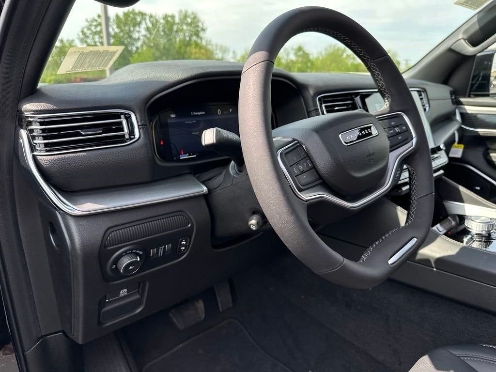 Protect this unit from unwanted accidents with a cutting edge backup camera system. The leather seats in this 1/2 ton suv are a must for buyers looking for comfort, durability, and style. This vehicle has automated speed control that adjusts to maintain a safe following distance, enhancing highway driving convenience. with XM/Sirus Satellite Radio you are no longer restricted by poor quality local radio stations while driving this unit. Anywhere on the planet, you will have hundreds of digital stations to choose from. The Jeep Wagoneer offers Android Auto for seamless smartphone integration. The vehicle's Forward Collision Warning system alerts the driver to potential front-end collisions, enhancing safety. The Jeep Wagoneer features a hands-free Bluetooth® phone system. Apple CarPlay: Seamless smartphone integration for it - stay connected and entertained on the go! Keep your hands warm all winter with a heated steering wheel in this 1/2 ton suv . The installed navigation system will keep you on the right path.