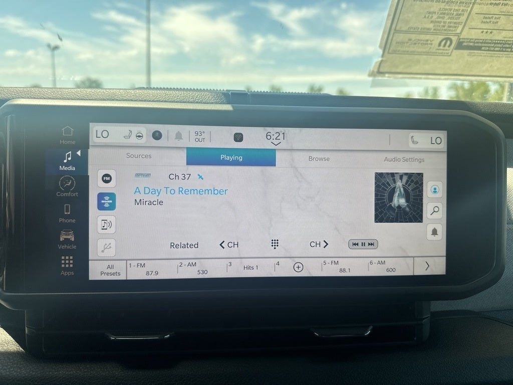 Convenience Group: Emergency/assistance Call; 2-Door Passive Entry. Front Door Locks; Remote Start System; Cluster 7.0" TFT Color Display; Universal Garage Door Opener; Heated Front Seats; Air Conditioning with Auto Temp Control; Heated Steering Wheel; Air Filtering. Quick Order Package 24S Sport S: Advanced Brake Assist; Speed Sensitive Power Locks; Automatic Headlamps; Deep Tint Sunscreen Windows; Full Speed Forward Collision Warning Plus; Front 1-Touch Down Power Windows; Sport S; Power Heated Mirrors; Enhanced Adaptive Cruise Control; Corning Gorilla Glass; Premium Wrapped Steering Wheel; Security Alarm; Sun Visors with Illuminated Vanity Mirrors; Remote Keyless Entry. Technology Group: Alpine Premium Audio System; 240 Amp Alternator. LED Headlamp and Fog Lamp Group: Front LED Fog Lamps; LED Premium Reflector Headlamps. 17" X 7.5" Machined with Black Pockets Wheels. Black Clearcoat. MOPAR All-Weather Floor Mats. **Equipment listed is based on original vehicle build and subject to change. Please confirm the accuracy of the included equipment by calling the dealer prior to purchase.**